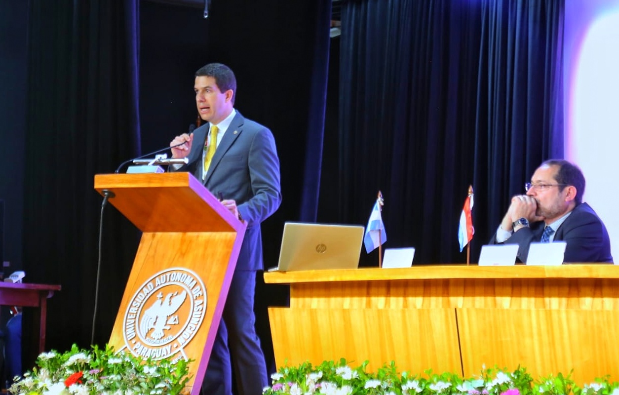 La Conferencia de apertura  fue: «Inteligencia Artificial: Reinventar el trabajo en la era de la IA», estuvo a cargo de Sergio Somerville, Director de Posgrado – Universidad Autónoma del Paraguay